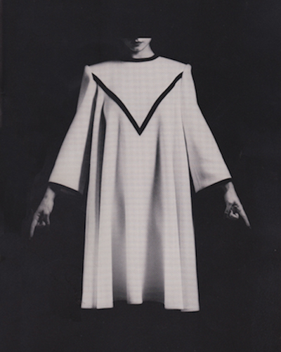 Intimate Architecture: Contemporary Clothing Design turns out to have been the first art exhibition on clothing (as distinct from a “costume exhibition”, of which the Metropolitan Museum of Art and the Victoria and Albert Museum in London have been long-time leaders). The show at MIT’s Hayden Gallery (now the List Visual Arts Center) included the work of eight contemporary designers who conceived and even “built” their clothing as an architect would construct a shelter. The designers were Giorgio Armani, Gianfranco Ferré, Mariuccia Mandelli of Krizia, Stephen Manniello, Issey Miyake, Claude Montana, Ronaldus Shamask, and Yeohlee Teng.